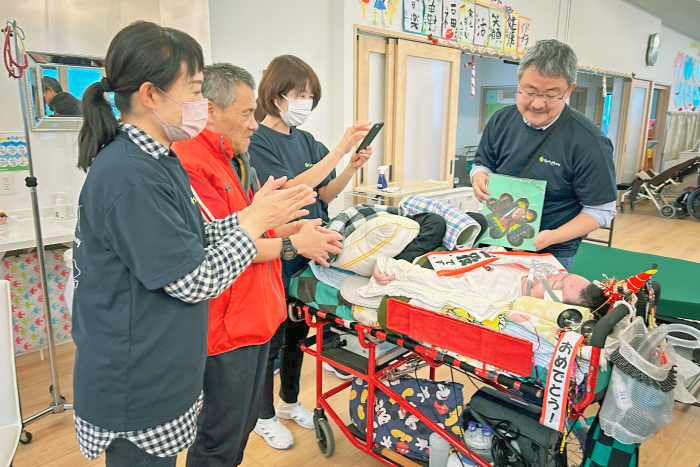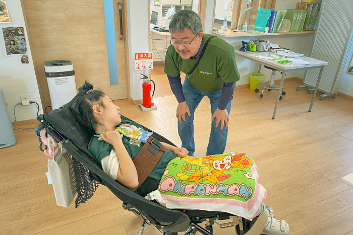 利用者様を、ご家族様と離れて、シンフォニーで預かることになります。そのため、保護者様に安心してご利用いただくために、ご家庭でされている医療ケア・介助の方法、日常の様子をお伺いするなど、保護者様とも密なコミュニーケーションをとっています。