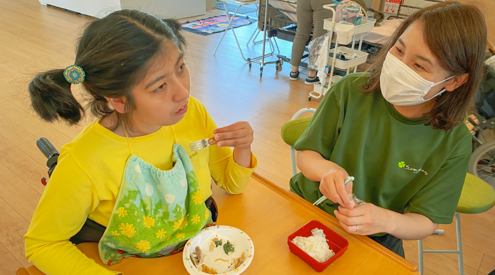 シンフォニーには、内科循環器の経験を持つ看護師や、介護福祉士など専門的な知識と経験を持つスタッフがいます。日常生活に必要なサポート以外にも、痰の吸引やチューブで栄養剤を注入するなど、医療的ケアで健康管理も行います。